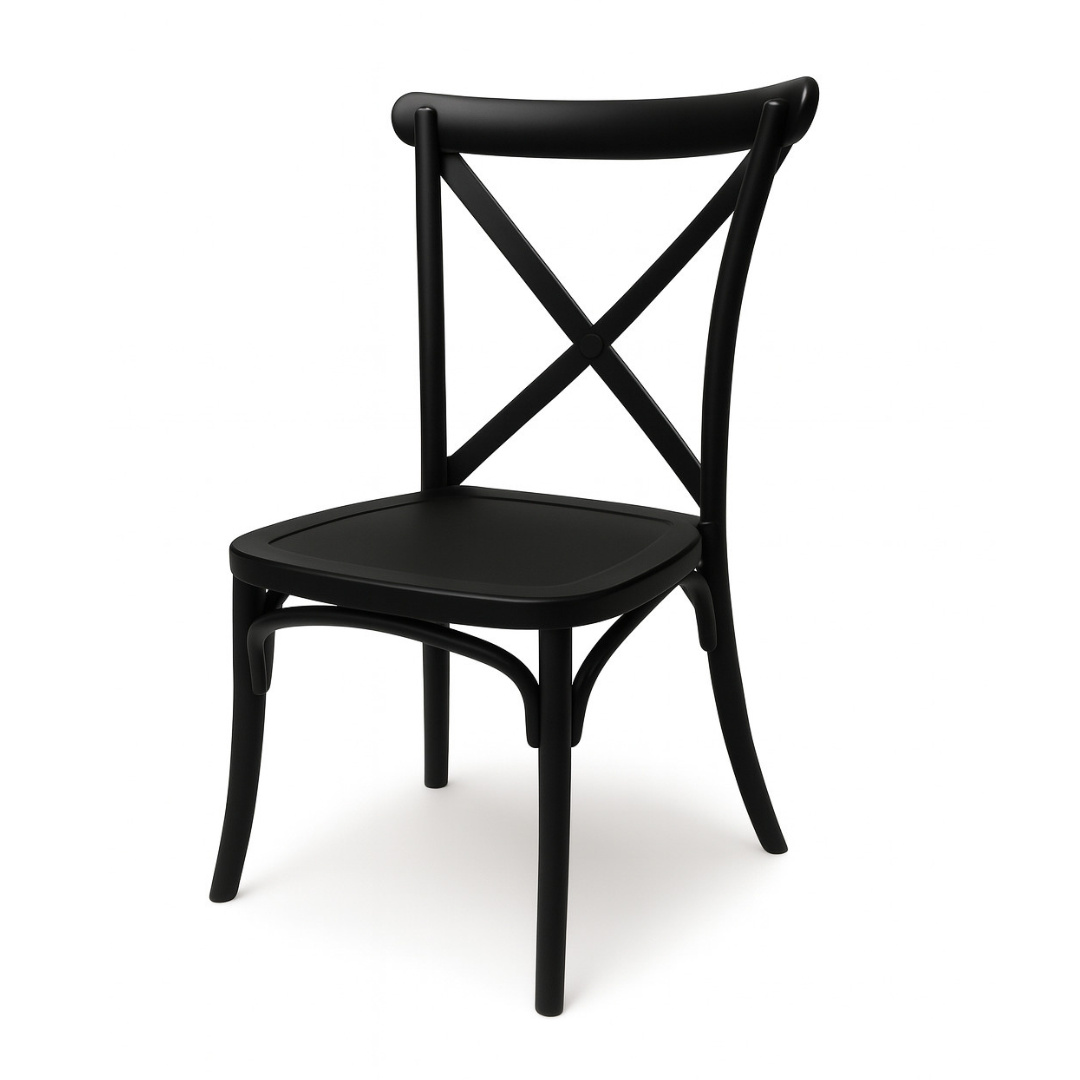 Sytě černá barva dodává židli moderní, elegantní charakter. Jedná se o model, který se osvědčí jak při každodenním používání doma nebo v mateřské škole, tak i při výjimečných událostech – svatbách, křtinách, svatém přijímání nebo narozeninových oslavách. Stylové křížové opěradlo charakteristické pro řadu Boho podtrhuje její jedinečný design a dodává uspořádání zvláštní atmosféru.