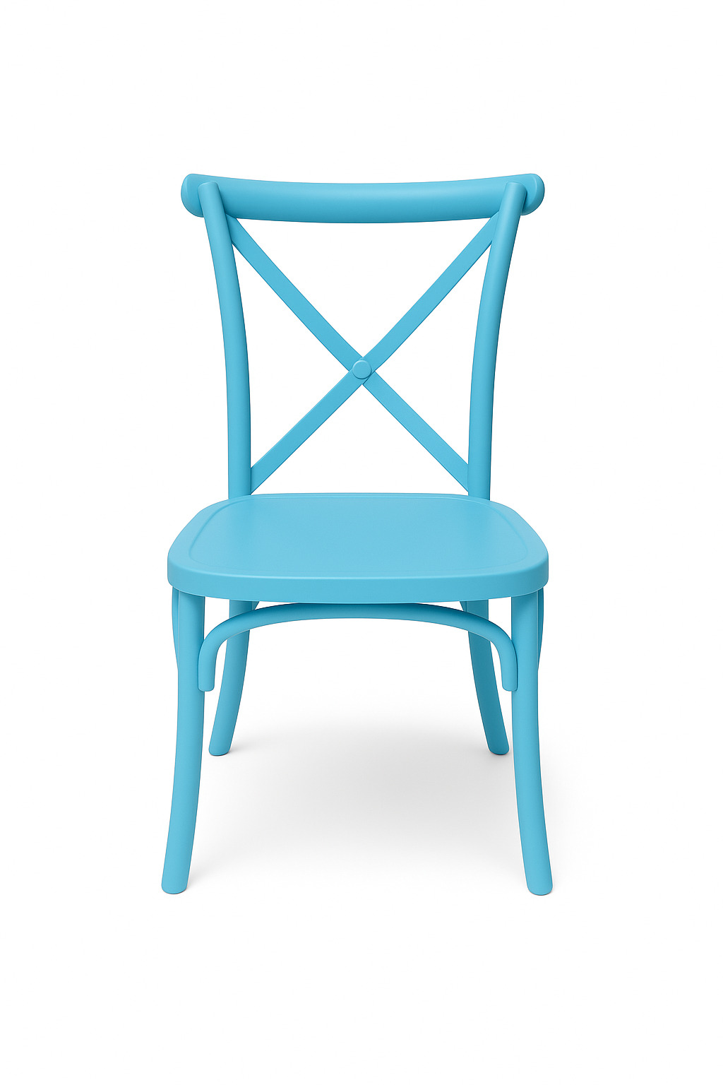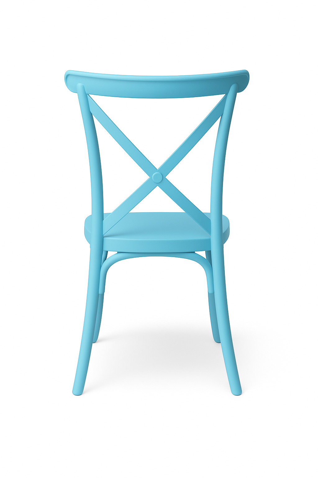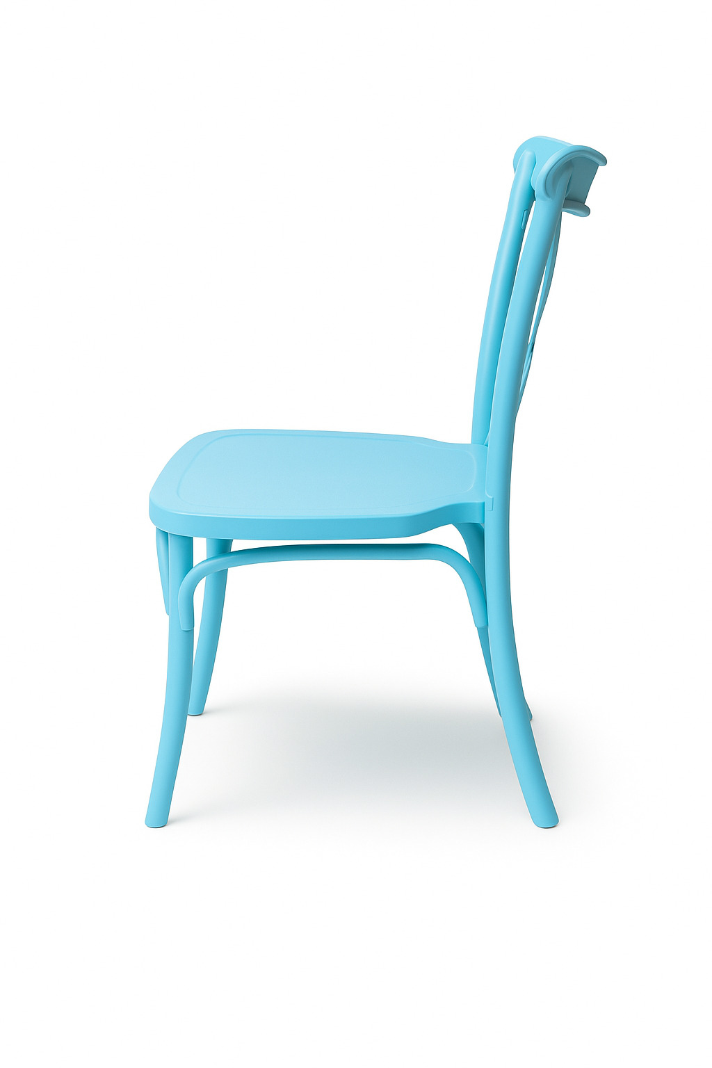 Pastelově modrá barva dodává židli lehký a svěží vzhled, takže se skvěle hodí do dětského pokoje, dětského pokoje nebo herny. Model Boho se také skvěle hodí na rodinné oslavy – narozeniny, křtiny, svaté přijímání nebo svatby – a dodá výzdobě jemný půvab. Charakteristické křížové opěradlo ve stylu Boho podtrhuje jeho jedinečný design.