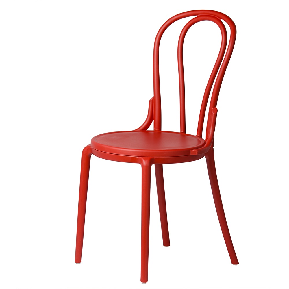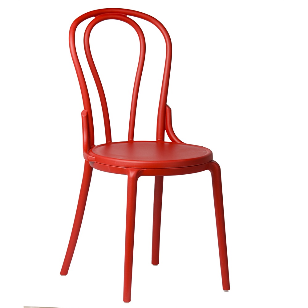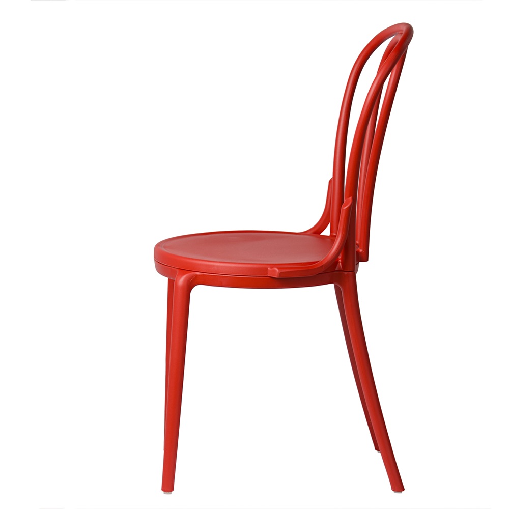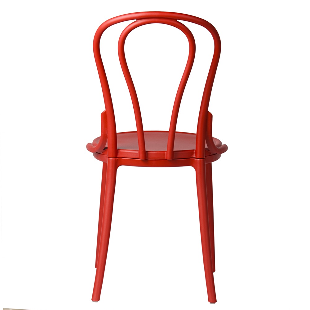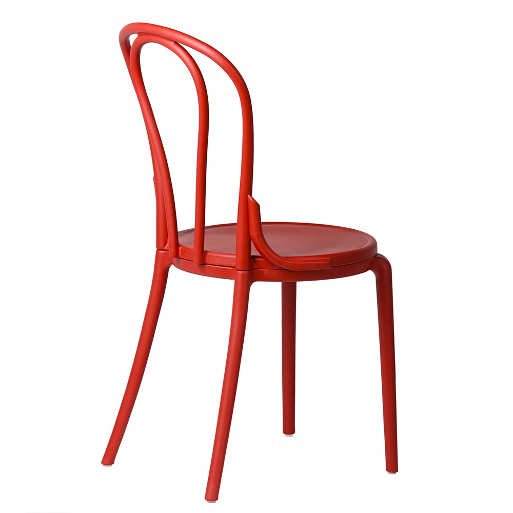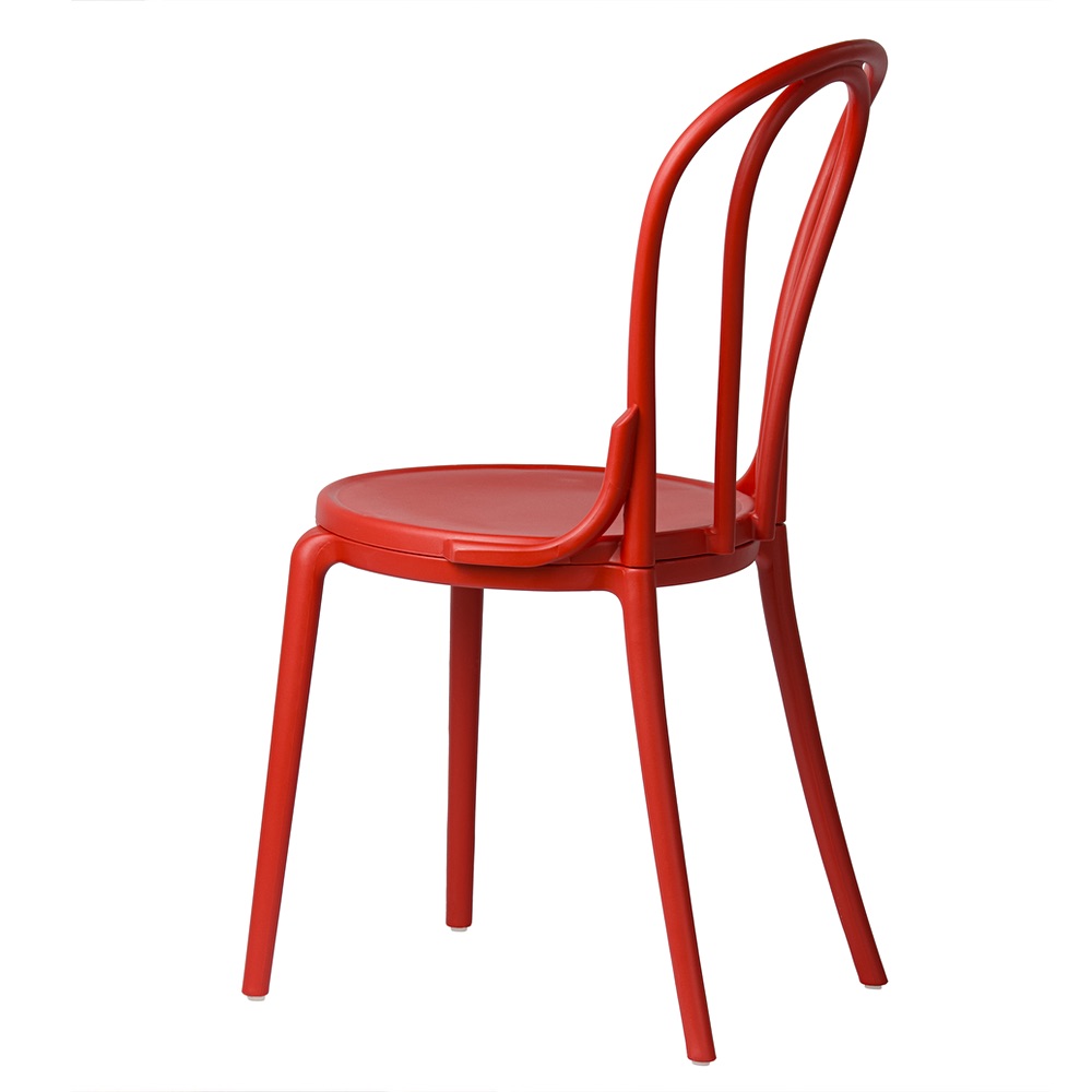 Charakteristické, tvarované opěradlo s dekorativními liniemi dodává židli lehkost a eleganci. Je to detail, který odlišuje tento model od standardních plastových židlí. Zaoblený tvar zajišťuje, že i přes intenzivní barvu si židle zachovává harmonický a soudržný tvar. Pokud hledáte červenou židli ve stylu vintage, která kombinuje klasický styl s moderním provedením, model Vintage bude tou správnou volbou.