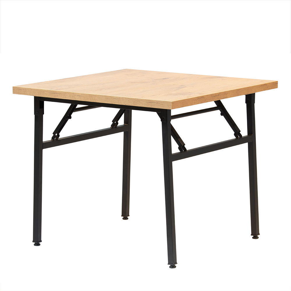Skládací stůl 80×80 cm – dub Lancelot je jedinečnou kombinací funkčnosti a nezaměnitelného stylu. Deska v barvě dubu Lancelot se vyznačuje hlubokým elegantním odstínem, který dodává stolu osobitý a elegantní vzhled. Povrch desky potažený laminátem zajišťuje odolnost a snadnou každodenní údržbu. Díky konstrukci založené na pevném černém ocelovém rámu je tento stůl stabilní a skvěle se hodí do moderních i klasičtějších interiérů, kterým dodá stylový nádech.