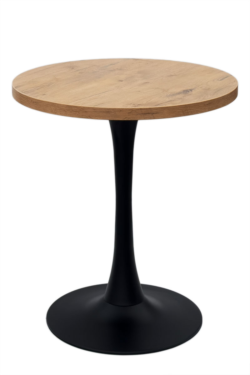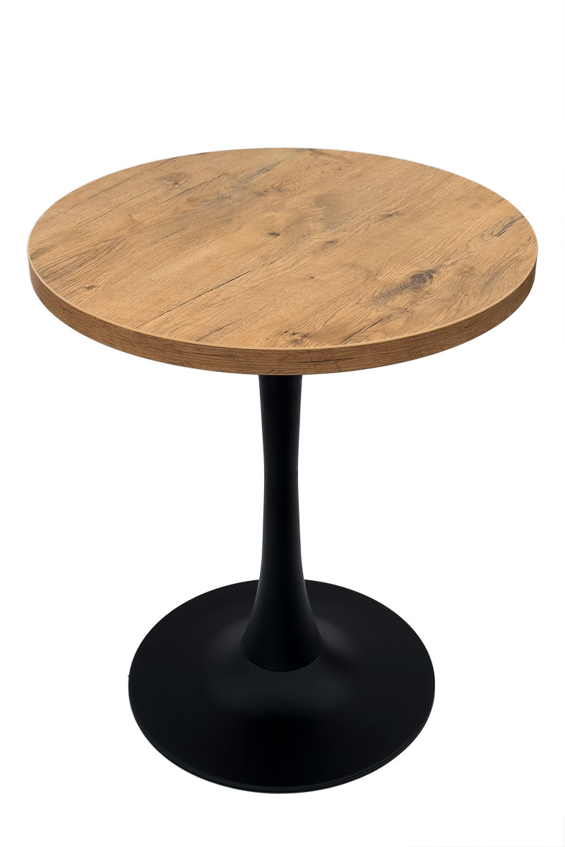 Kavárenský banketový stůl s deskou o průměru 68 cm z dubového lancelotu na černé kulaté kovové podnoži je elegantním a praktickým kusem nábytku, který dokonale zapadá do moderních interiérových trendů. Jeho robustní konstrukce, elegantní design a funkčnost z něj činí ideální volbu pro komerční i domácí prostory. Ať už potřebujete stylový stůl do kavárny, restaurace nebo jídelny, tento model splní vaše očekávání a vnese do vašeho interiéru teplo a eleganci.